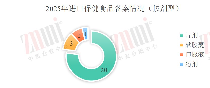 进口保健食品备案获批共计26款,剂型主要有片剂、软胶囊、口服液与粉剂四种,其中片剂数量居于首位。
