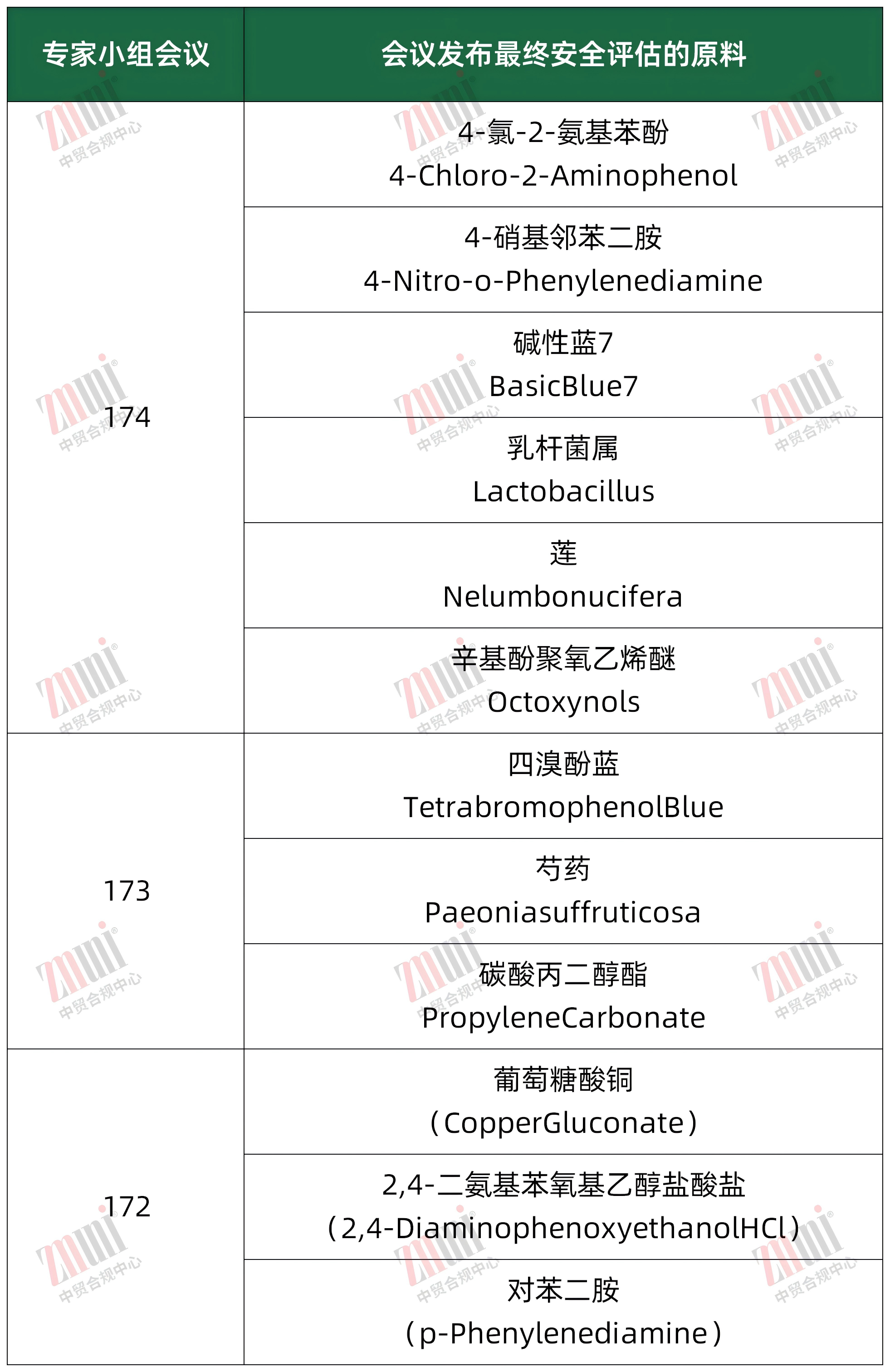 据统计,2025年美国CIR专家小组举行了3次专家小组会议(即第172-174次),共发布12篇原料的最终安全评估,涉及以下原料: