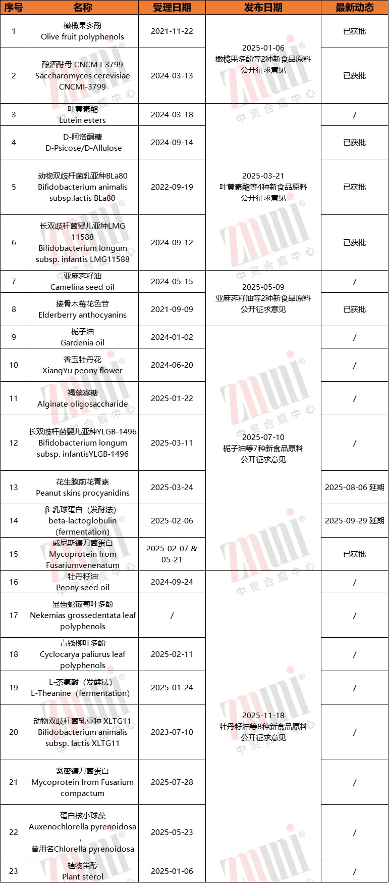 【ZMUni中贸合规中心】长期深耕创新食品原料准入服务,持续跟踪国内外政策动态与审评趋势,积累了丰富的申报经验。我们可为企业提供从技术路线评估、法规路径设计、申报资料准备,到沟通支持与风险研判的全流程合规服务,助力创新原料高效、稳妥落地。