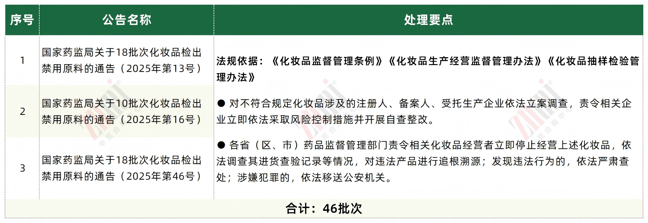 从2025年的抽检通告来看,国家药品监督管理局对化妆品禁用原料的监管呈现出以下趋势: