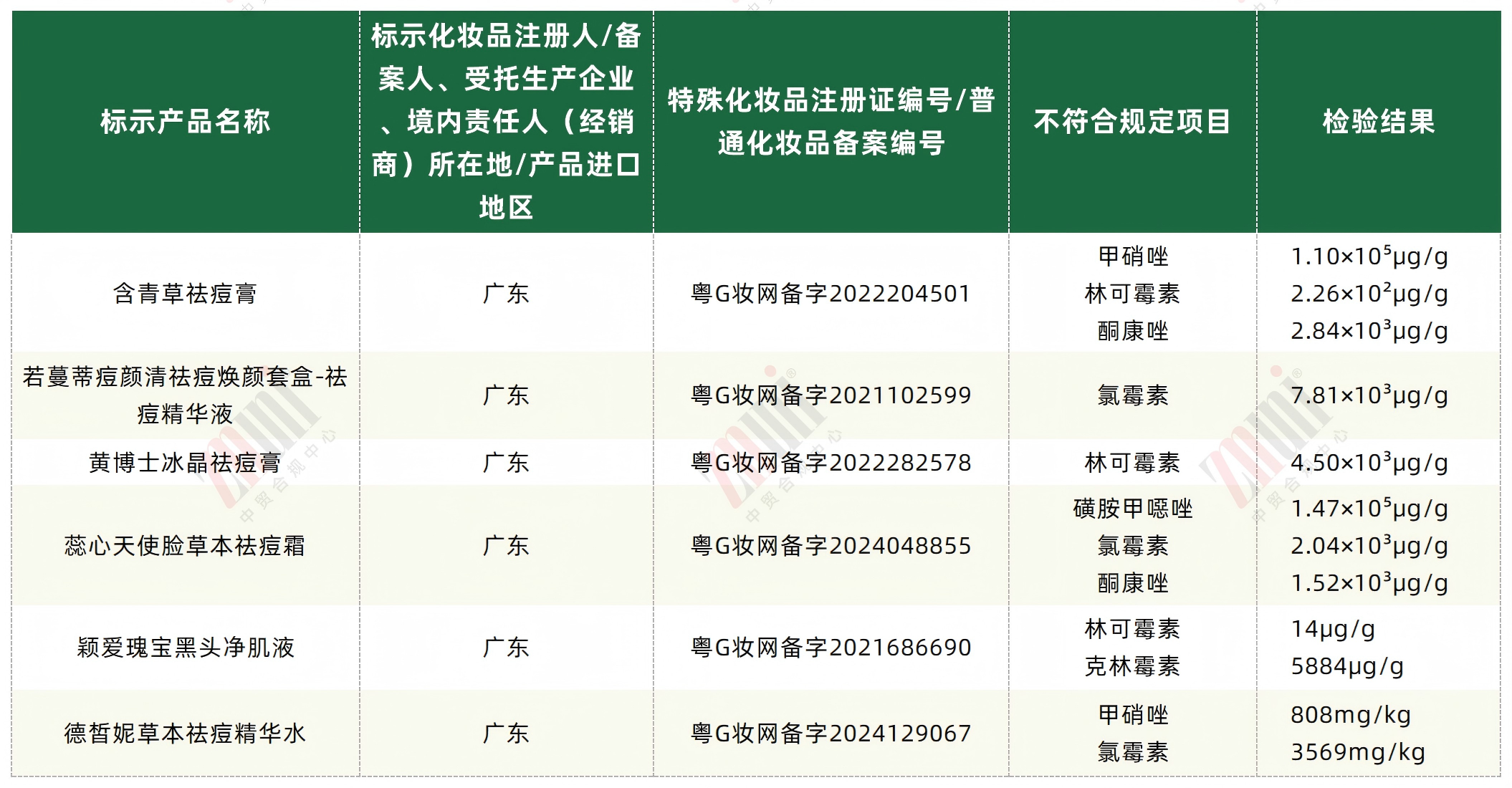 ◼️重点品类明确:祛痘类产品、婴幼儿产品、染发类产品是检出禁用原料的重灾区;