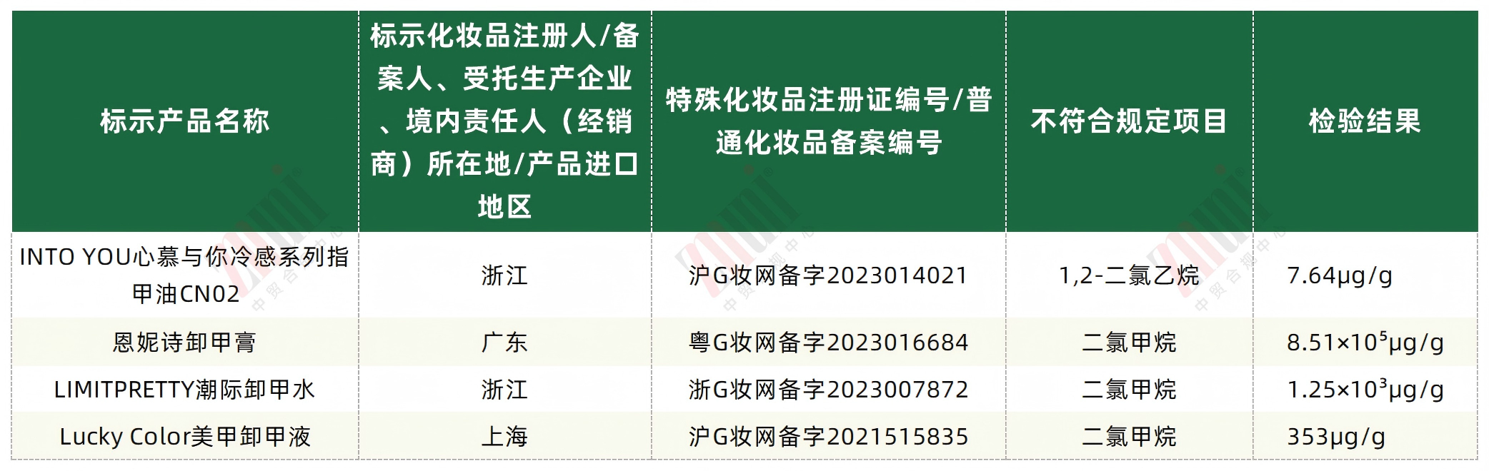 说明:1,2-二氯乙烷收录于《化妆品禁用原料目录》序号465;二氯甲烷收录于《化妆品禁用原料目录》序号1271