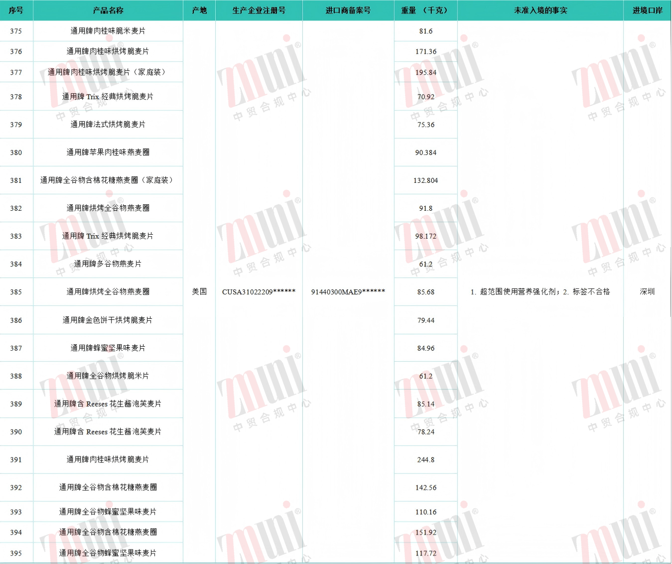 2️⃣21批来源于同一产地的麦片类产品因涉及超范围使用营养强化剂原因被拒入境