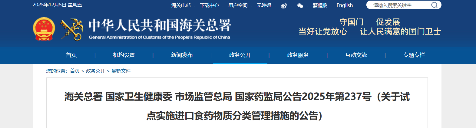为持续优化口岸营商环境,支持食药物质进口贸易发展,海关总署、国家卫生健康委、市场监管总局、国家药监局决定对部分食药物质试点实施进口分类管理。现将有关事项公告如下: