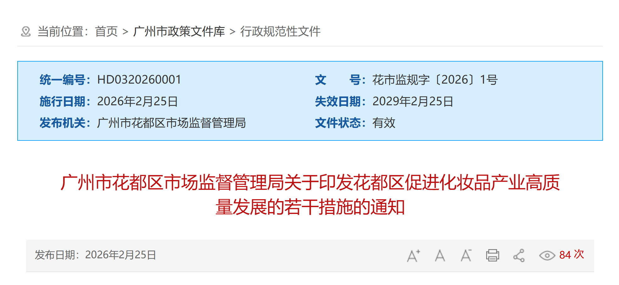 广州市花都区市场监督管理局关于印发花都区促进化妆品产业高质量发展的若干措施的通知