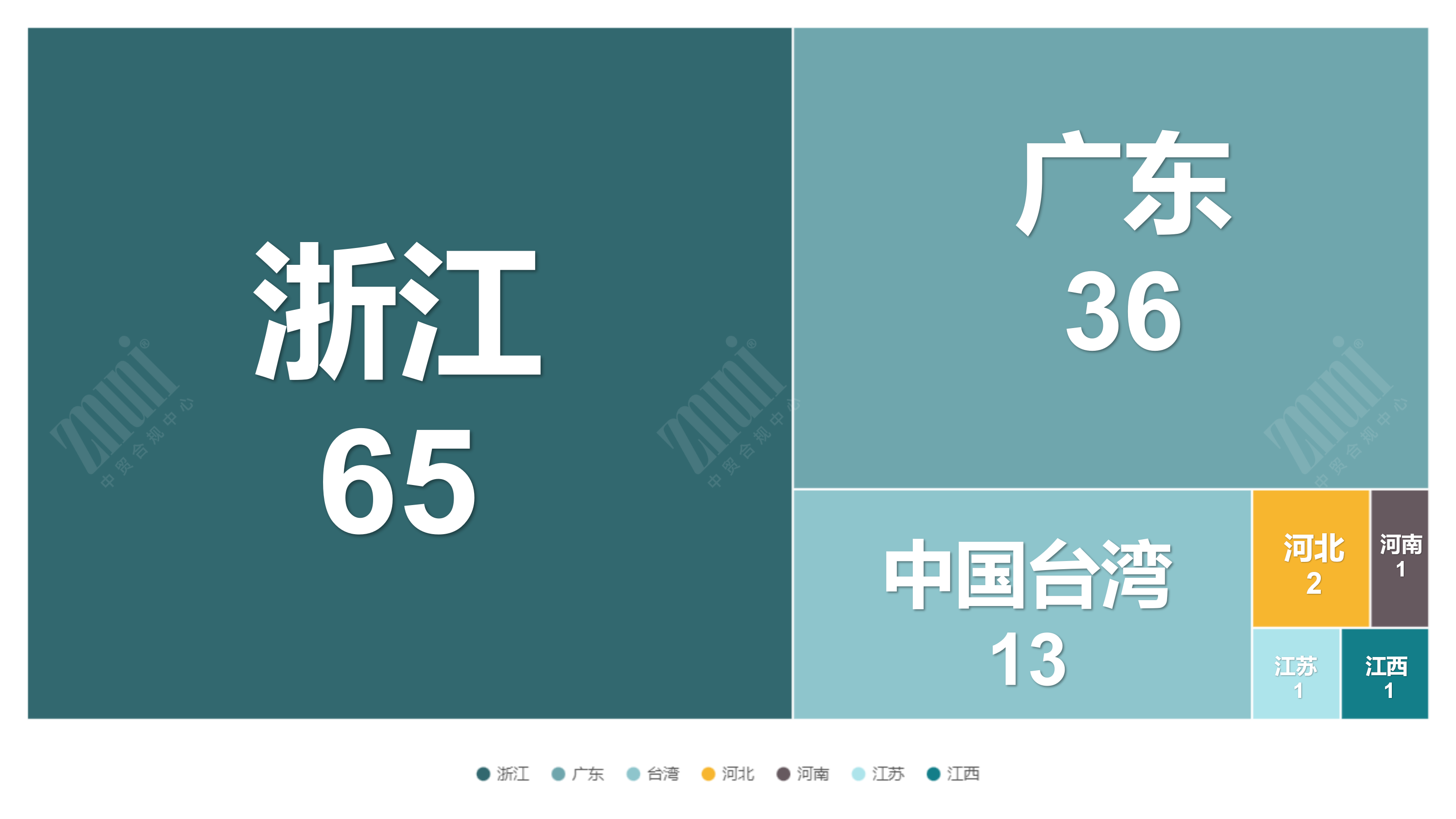 从省市分布来看,被拒入境化妆品中超五成产品来自浙江,共计65批次。其次是广东,共36批次输美产品入境被拒。其余产品分别来自中国台湾(13 批次),河北(2批次),河南、江苏、江西(各1批次)。