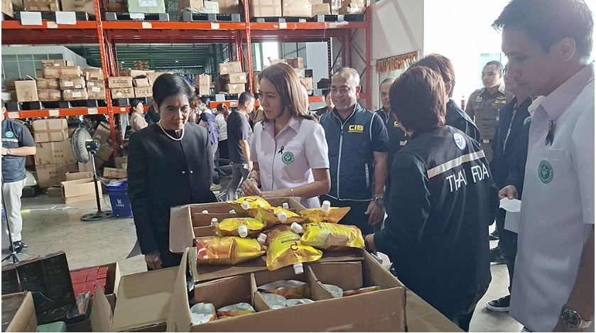 FDA官员与CPPD部门一起检查曼谷邦邦区一家非法进口中国化妆品的仓库