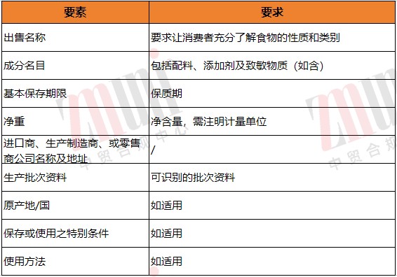 根据《食物及药物(成分组合及标签)(修订)规例》第132W章规定,除非获得豁免,否则所有预包装食物均须标示以下强制性标签内容: