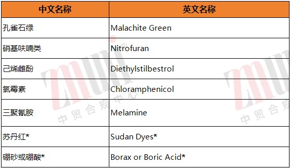 ✅️《食品中禁用物质清单》第6/2014号行政法规,后经第3/2016号行政法规进行修订新增*,清单如下