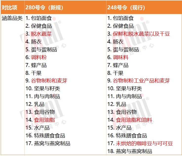 对《注册规定》第六条进行了明确。将需官方推荐注册的食品类别从原来的18大类调整至17大类,调出了“未烘焙的咖啡豆与可可豆”大类,缩减了油料、杂粮、保鲜蔬菜、干豆、调味料等食品类别。