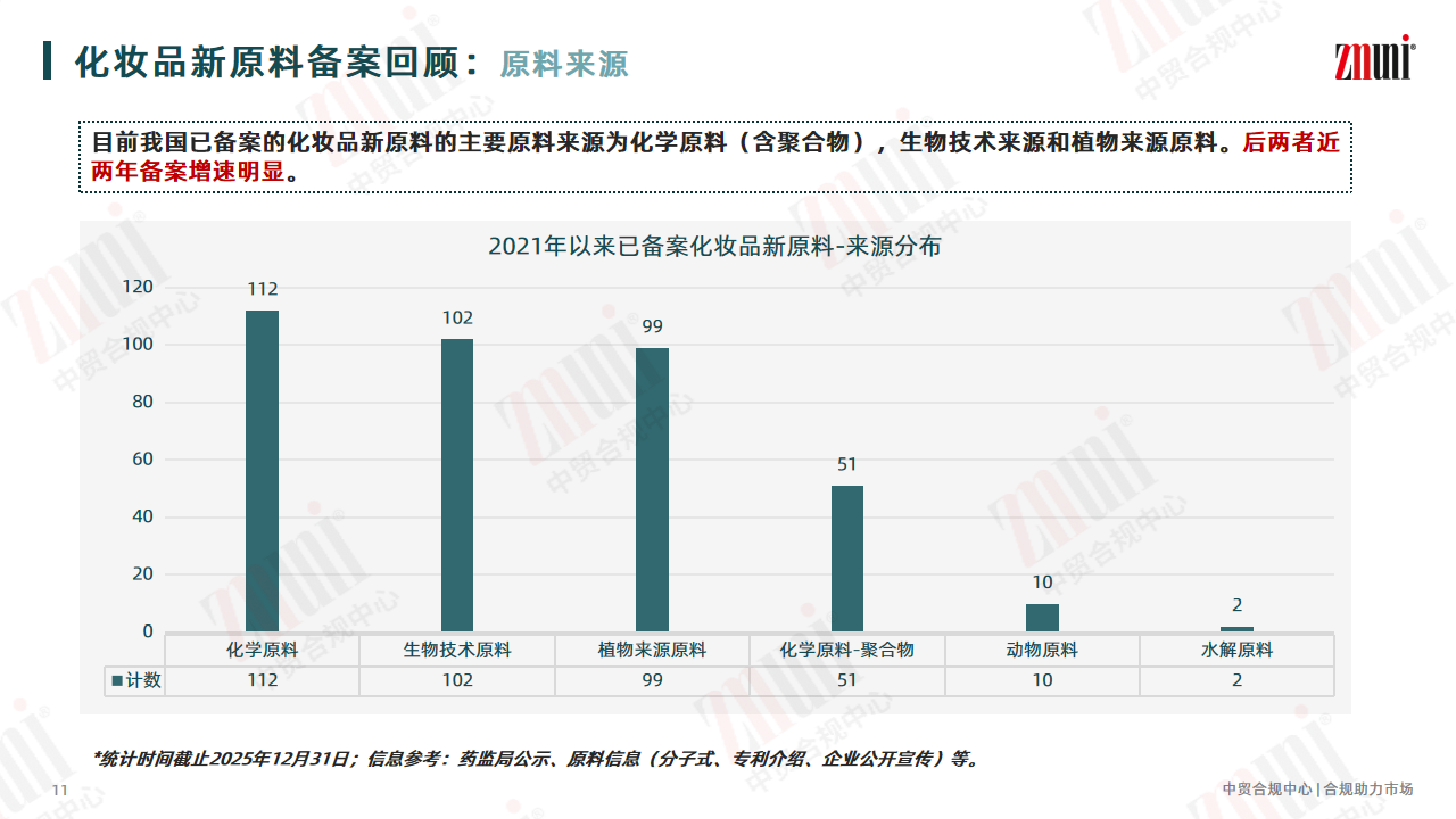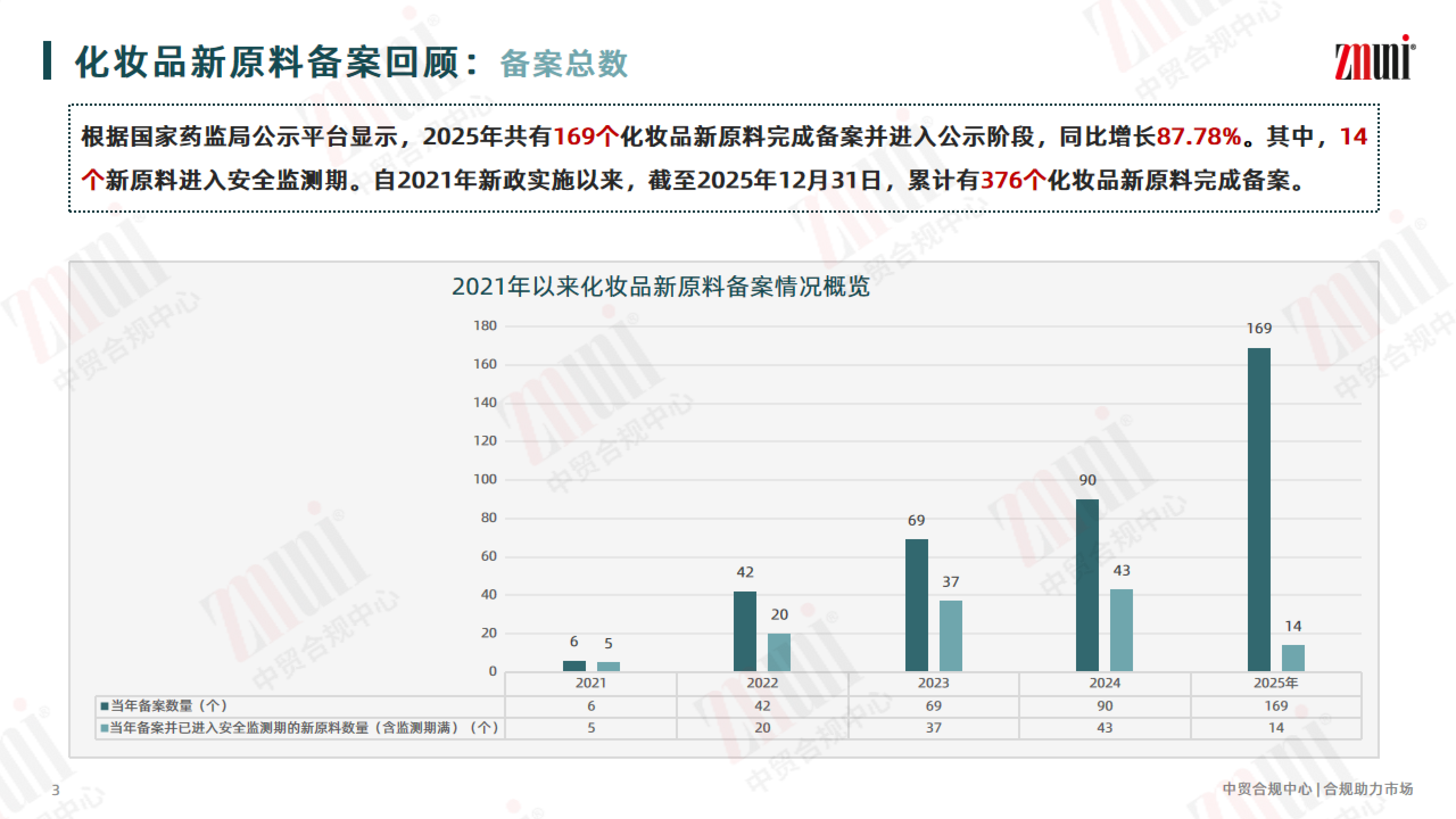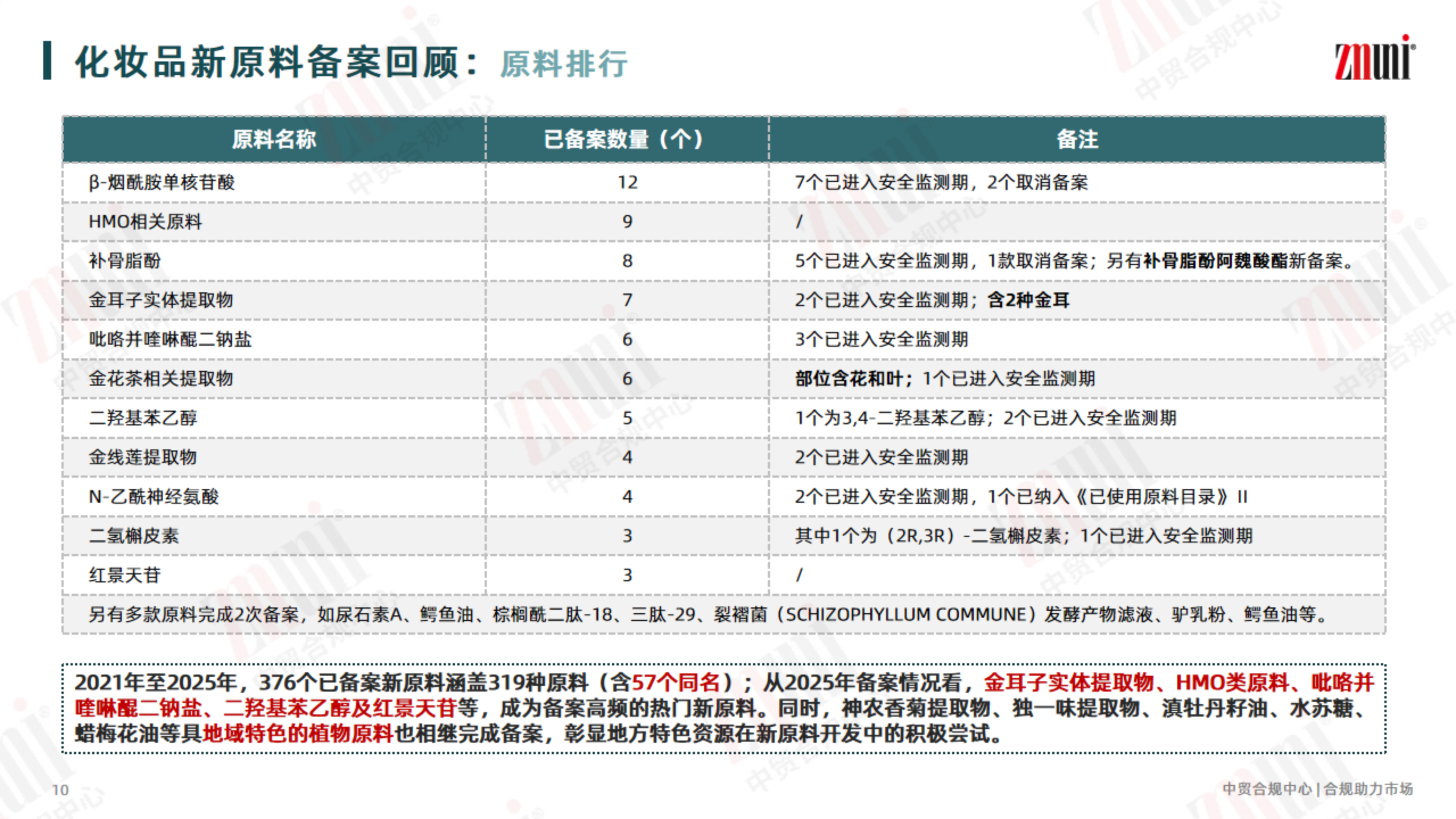为助力行业清晰掌握新原料备案动态,近期 ZMUni 中贸合规中心对2021年—2025年的化妆品新原料注册备案情况进行梳理回顾,并整理成分析报告,供行业同仁参考。