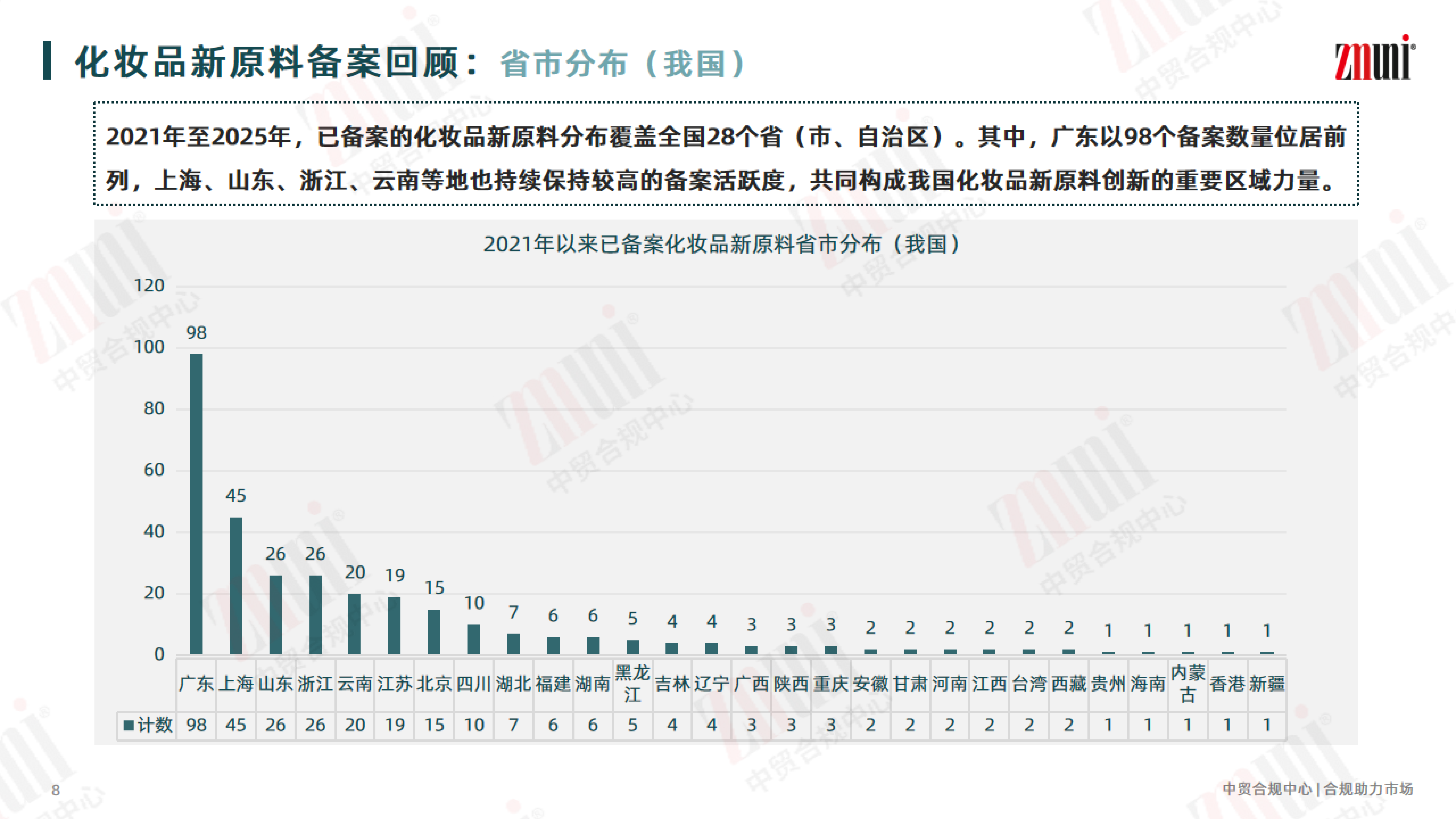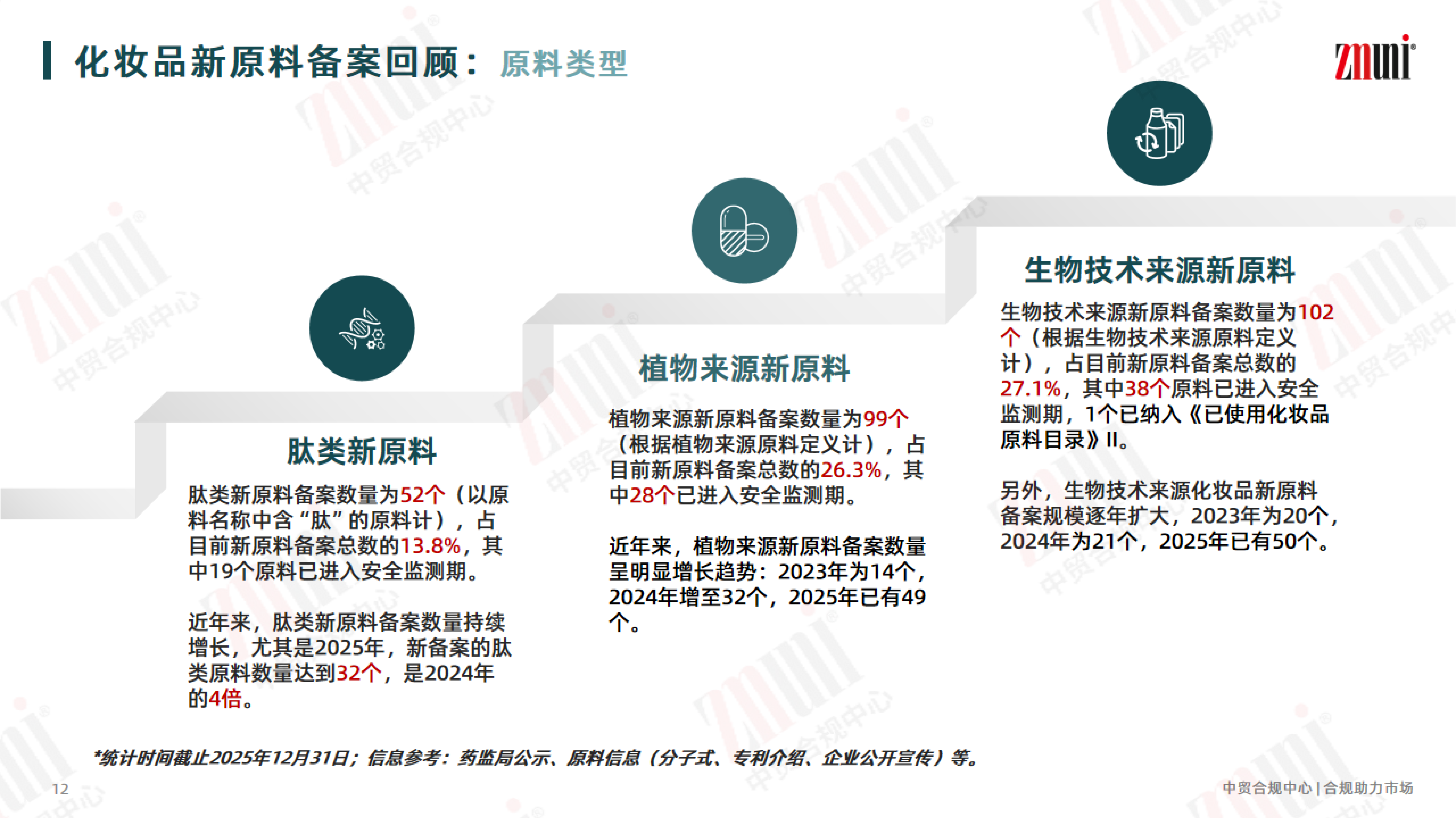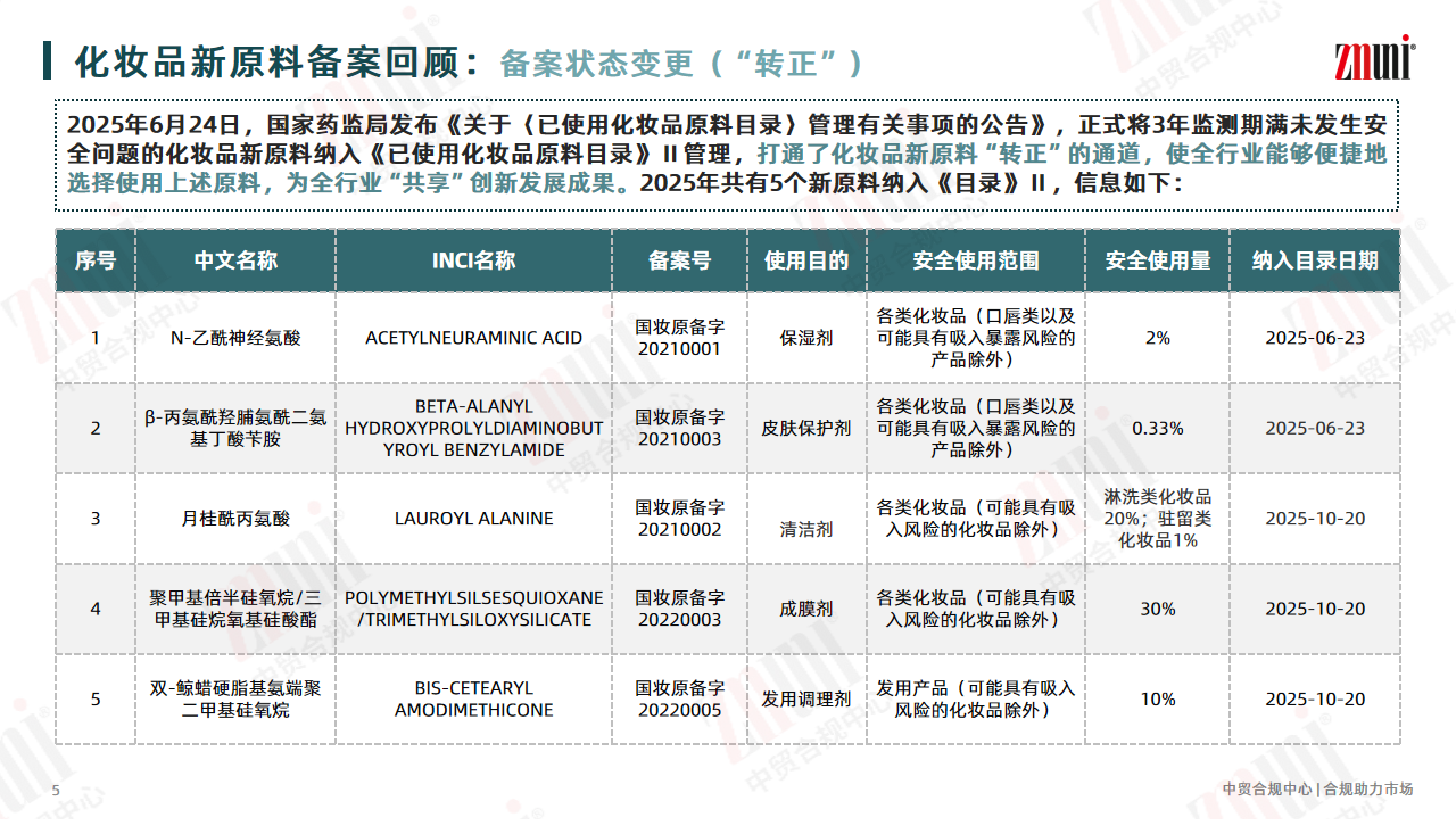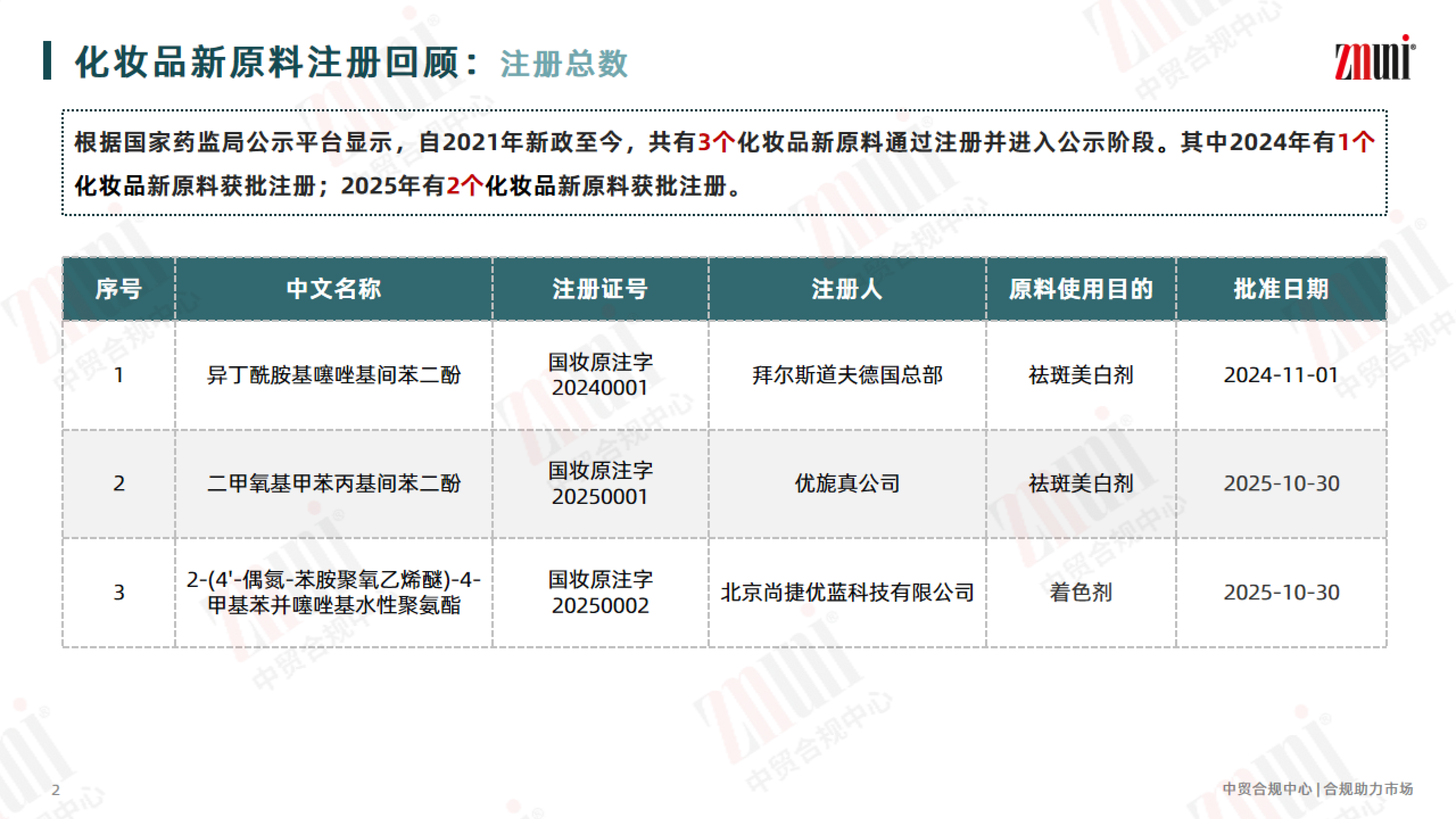 为助力行业清晰掌握新原料备案动态,近期 ZMUni 中贸合规中心对2021年—2025年的化妆品新原料注册备案情况进行梳理回顾,并整理成分析报告,供行业同仁参考。