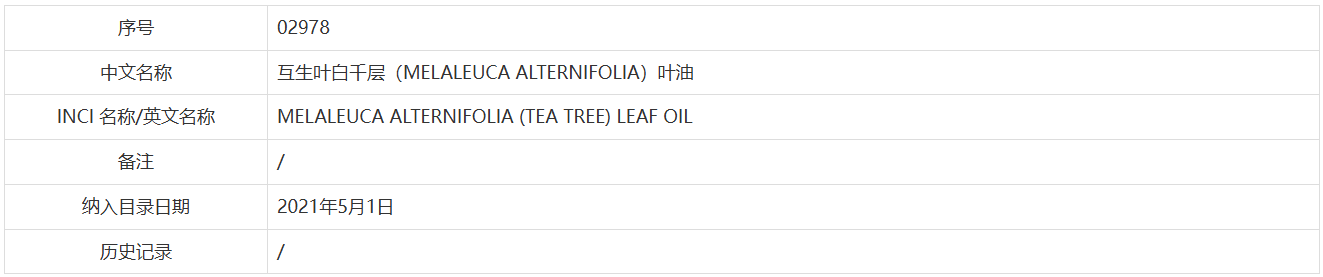 🔵TTO收录于《已使用化妆品原料目录》I。