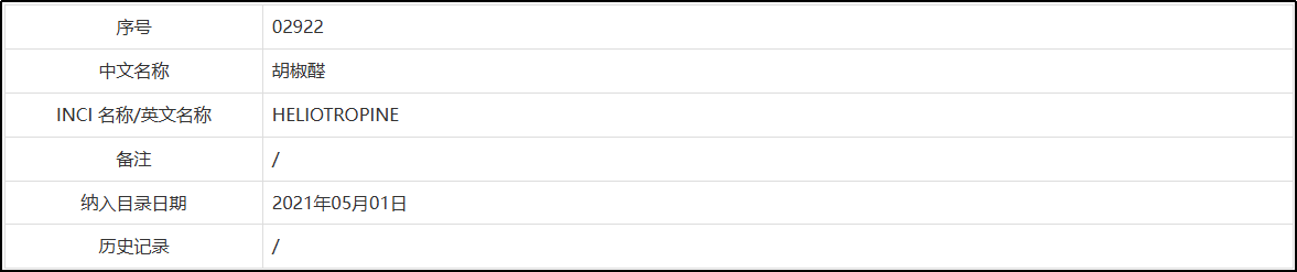 🔸胡椒醛收录于《已使用化妆品原料目录》I。