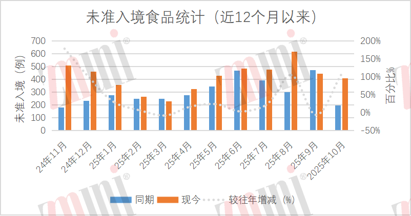 1️⃣10月未准入境食品数量:同比有所减少,环比增加较多