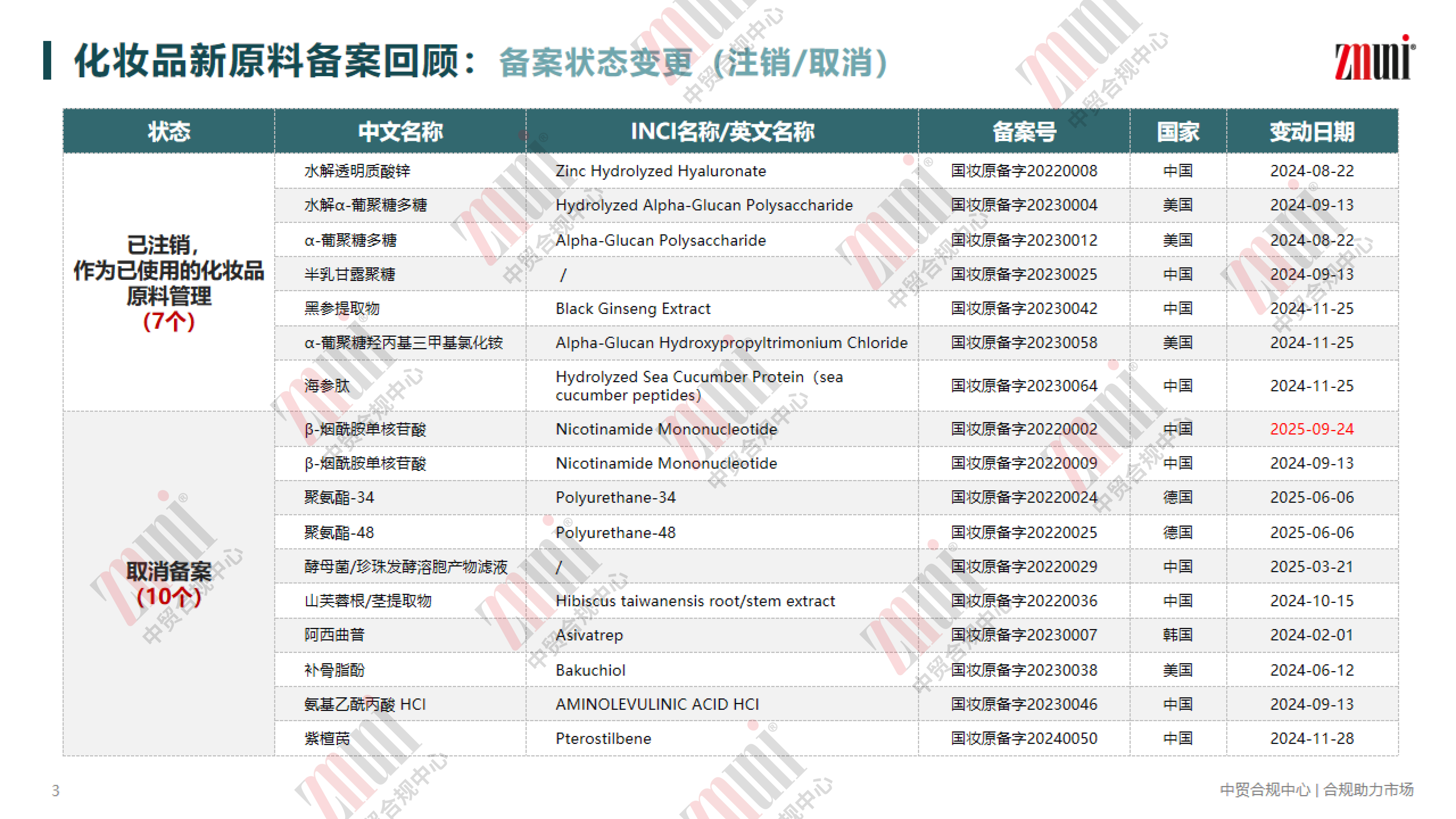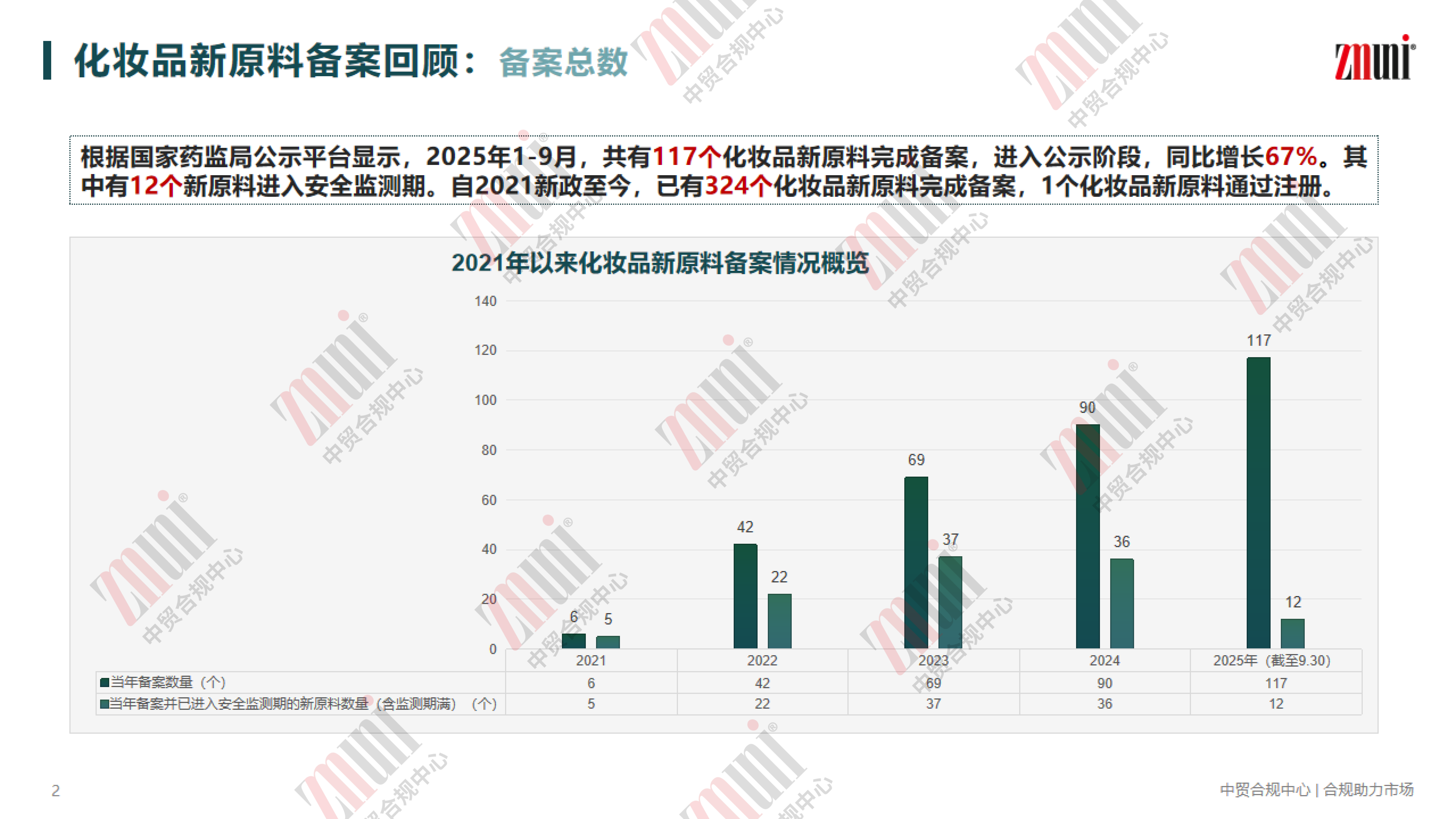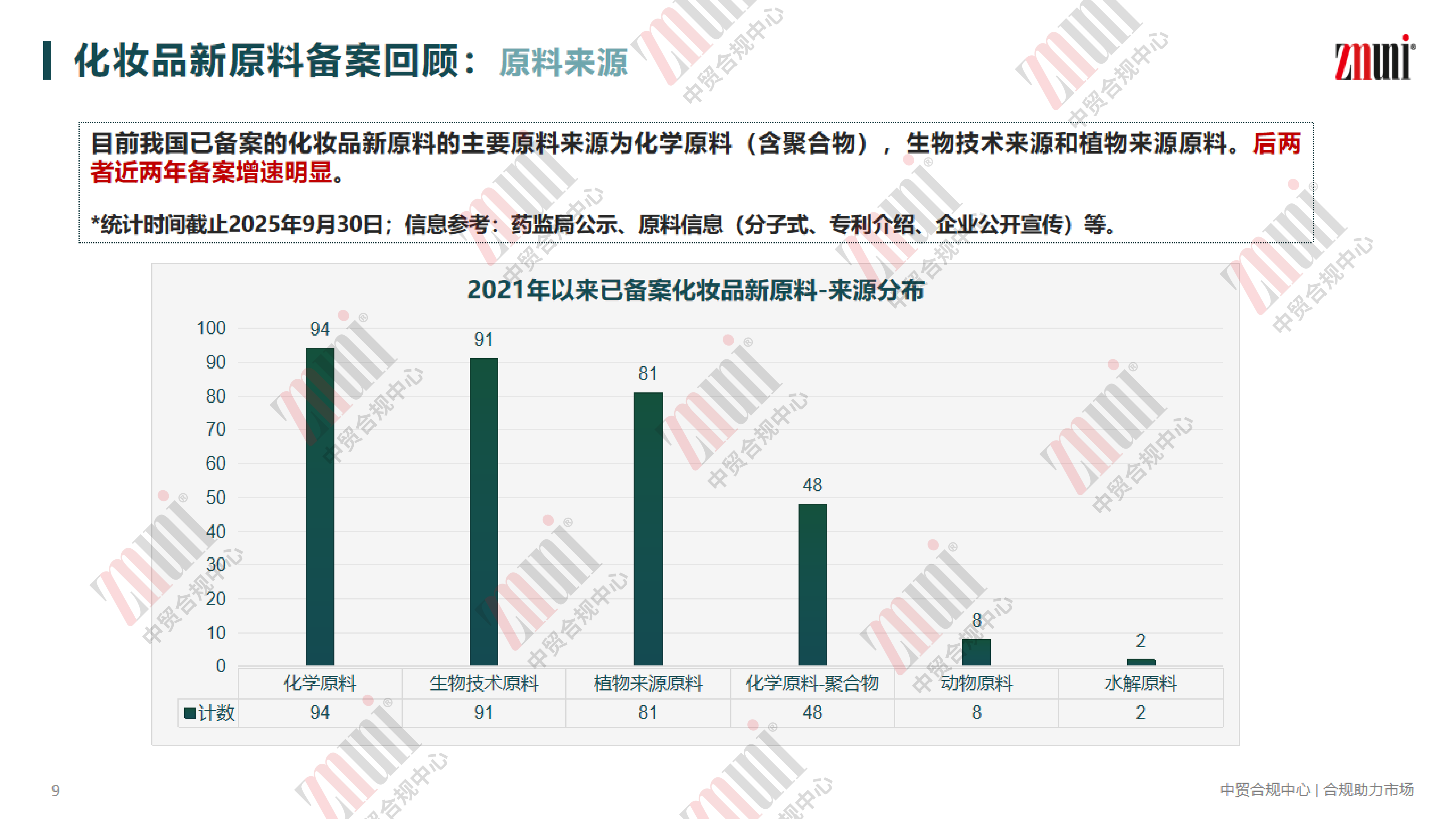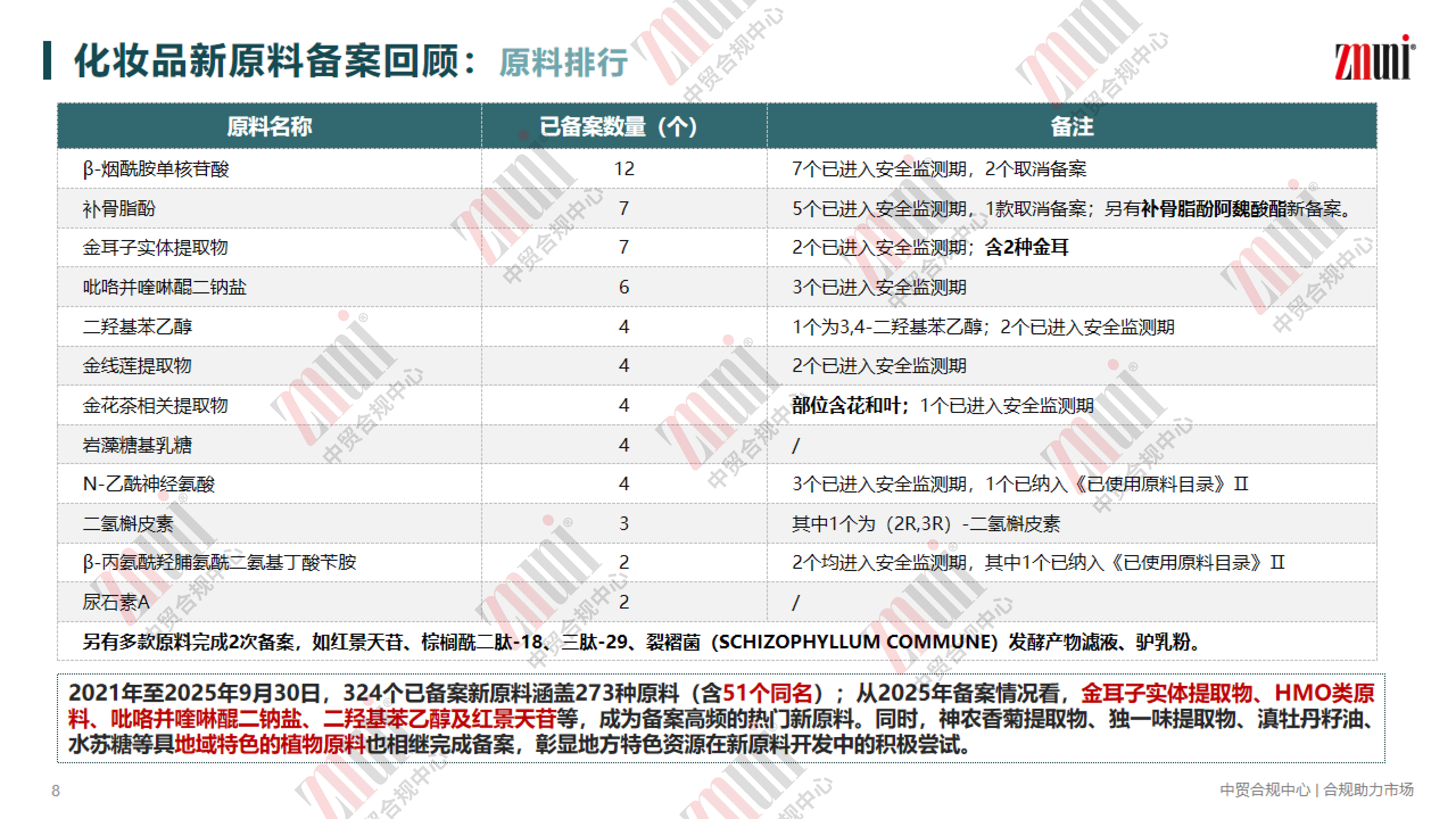 为助力行业清晰掌握新原料备案动态,近期 ZMUni 中贸合规中心对2021年—2025年9月30日的化妆品新原料备案情况进行梳理回顾,并整理成分析报告,供行业同仁参考。
