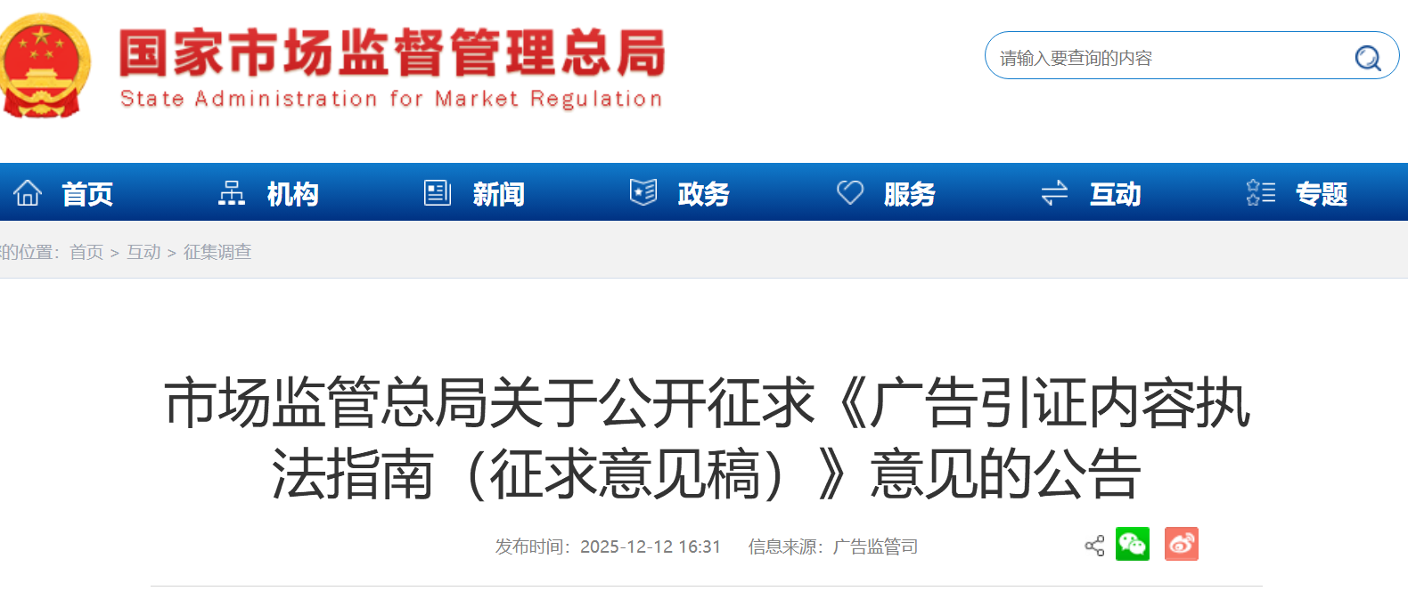 此外,为规范广告引用第三方报告、虚假宣传“行业第一”及“小字免责”等问题,12月12日市场监管总局发布公开征求《广告引证内容执法指南(征求意见稿)》意见的公告。征求意见稿中对引证广告中广告经营者的认定和法律责任进行明确,提出“通过广告引证内容,明示、暗示其推销的商品具有与实际不符的疾病预防、疾病治疗、保健或者其他功能的,应当认定广告内容虚假或者引人误解”。此举与近期多地加强对广告合规的提醒及措施相呼应,广告监管趋严已成为全国性的明确趋势。