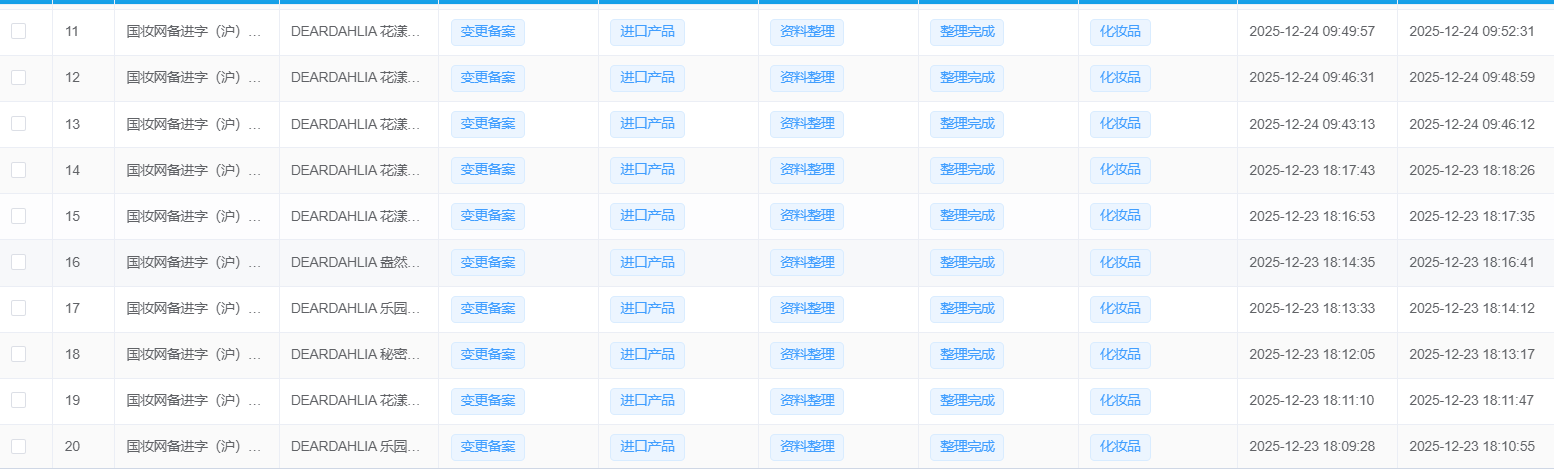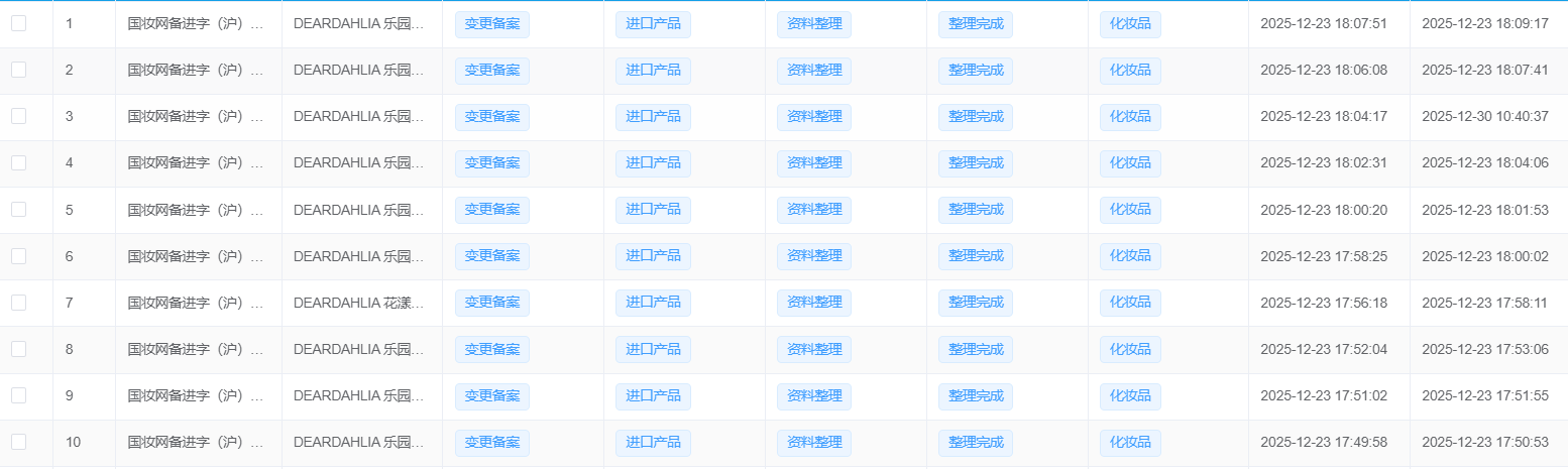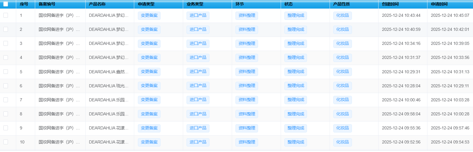 近日,据国家药监局公示平台显示,韩国纯净彩妆品牌 Dear Dahlia 顺利完成其旗下40款产品的境内责任人变更。此次变更工作由 ZMUni 中贸合规中心 全程提供专业支持,从资料准备、系统申报到最终公示,仅用时3周,高效完成全部流程。