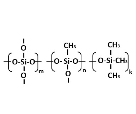 [SiO4/2]m[(CH3)SiO3/2]n[(CH3)3SiO1/2]k其中 m:n:k = 2.71:1:1 |