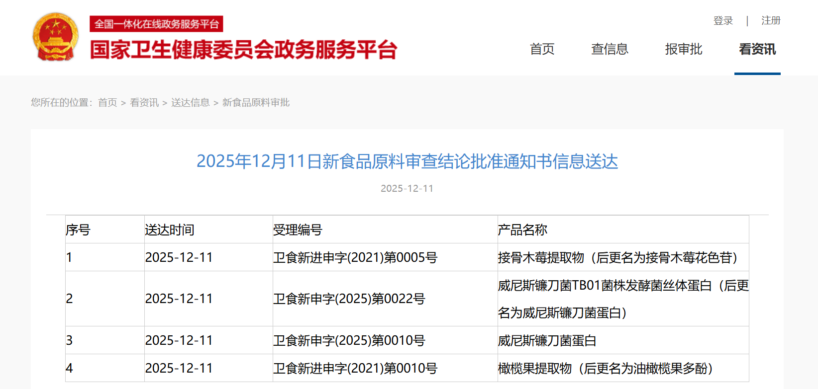 贸合规中心ZMUni根据国家卫生健康委员会发布的信息整理了以上“三新食品”的申报审批情况。具体情况如下: